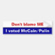 Klandra inte MIG, mig röstade McCain/Palin Bildekal