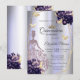 Guld glitter tiara, klänning, fjärilar och violetta rosor på en lavendelbakgrund. Bjud in gästerna att delta i firandet av denna milstolpe med en design som speglar magin och glädjen i din quinceañera.