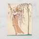 Art décostilillustration av en ung kvinna på lek med ett körsbärsrött träd i bakgrunden av George Barbier.