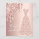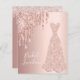Elegant, klassiskt, glamoröst och gigantiskt stil-möhippa, duschinbjudan. En klänning i ro guld med faux ro guld glitter dropp. Metallisk bakgrund i ro guld tittar. Med texten: Möhippa Luncheon på framsidan skriven med ett modernt, vitt färgad-handskript med texten stil. Lägg till din händelseinformation på baksidan.