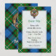 Klansymbol för Clan Ferguson omgiven av en rem och spänne över tartanbakgrund. Anpassad text på båda sidor.
