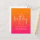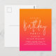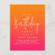 Fira din födelsedag i djärv, vacker stil! Denna anpassade födelsedagsinbjudan tryckt på ett vykort gör precis det med sina starka och djärva orange och het rosa ombre-färgtoner blandade med modern vit text och en handskriven accentstil som stavar ut ordet "födelsedag" i fantastisk stil. Färgerna påminner om en soluppgång och början på en ny era! Dessa inbjudningar kan beställas i både tryckt och digital nedladdningsbar format.