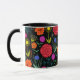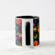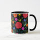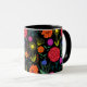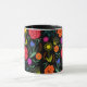Klara färgglada blommor på svart mugg