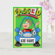 Tecknad bild på man som just klarat körkortstest, namn kan placeras på bilens skylt