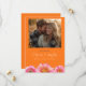 Meddela din bröllop på ett livfullt sätt med detta djärva färgfoto "Spara datum" från Vivid Vows-kollektionen. Ett favorit-fotografi från förlovningen tar centerplats, inramat av en mättad tangerinebakgrund och ljusa rosa blommor längs botten för en glad, modern look.