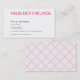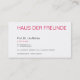 En sida tryckt med alla nödvändiga uppgifter som ett visitkort bör innehålla, en sida tryckt med diskret mönster. Diskret och ändå unik, tydlig i sin framställning, ovanlig utan att vara spelad, klar och objektiv. För näringsidkare med stil, tydlig hållning och mycket information.