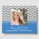 Den här gästen bok i studenten har trendig svart och vit zigzags som bakgrund accentuerad med en blå övertoning färg. Texten från stil i den vita handskriften lyder: Klass 2017 med anpassningsbar för student namn och skolan. Med fotot av anpassningsbarna ram kan du lägga till ett foto av student. Den här designen accentueras med en pantpapp på baksidan.