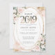En ovalad guld-oal ram ge i studenten ram är dess övergripande struktur. Guld ram är dekorerat med det mjuka rosa ros och sage grönt löv. En blek rosa vattenfärg stänk som är full med guld flingor gör mönstret ännu mer fläckfritt. År 2019 är skrivet i stora guld-siffror och har en rosa- och guld blommigt-utformning. En mjuk rosa-vattenfärg tvättar utsmyckning på baksidan av inbjudan till studenten.h