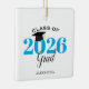 Denna julprydnad i studenten är en perfekt för 2022 student. Utformningen har året i ljusblå form med en pantpapp studenten hatt. Anpassa till student namn.