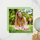 Med det här platta kvadratiska studenten-tacket har du ett anpassningsbar-foto ram som fyller hela framsidan. Kurvtext på högerna lyder: Klass 2023. I baksidan finns en bild av en rityta och anpassningsbar som du kan använda för att lägga till ett personligt tackmeddelande och ditt namn.