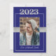 Denna inbjudan till studenten 2023 i klassen Blue & silver kan anpassas till inbjudan för att påbörja övningar och/eller en studentfest till student. Det skulle fungera bra för student, både för män och kvinnor. Framsidan är en porträtt av det graderade student på framträdande plats med "klass 2023" ovanför fotografiet och namn under. Det finns också ett faux ribbon över mitten bakom bild. På baksidan finns all information som krävs för att delta i festligheterna. En blå linje och "klass 2023" ligger längs grund kant. Denna inbjudan skulle fungera bra för högskolan och högskolan/universiteten studenten.