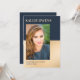 Personlig Havsblått och guld-klass för 2024 studenten-meddelande, platta fotokort. Personlig med 2 foton, student namn, namn och studenten år. Lappen på baksidan kan tala om era student prestationer i high school och/eller deras planer för framtiden. Det kan innehålla information om ceremonin i studenten eller en inbjudan till studentfesten.