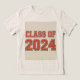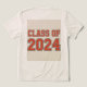 Den här t-shirten har en grafisk designtextlayout med texten KLASS AV 2024 i Collegiate-stil-text. Texten är ett ljust orange-rött färg med svart kontur och vit inre gräns. Brev är placerat i två linjer, med KLASS OF överst och 2024 nedan. Teckensnittet har en estetisk varians eller ett idrottslag med intensivt kant och ett blodigt, dimensionellt stil. Texten är centrerad på en vit bakgrund. Utformningen har ett bra, modernt utseende med kontrast mellan text och bakgrund. Typografin stil används ofta för tillkännagivande för studenten eller skolrelaterad grafik. T-tröjan är en kvinnoskjorta av Tri-Blend. T-tröjan är mjuk och bekväm.