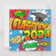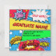 Pow!Ja! Klass för inbjudan till bok stil från 2024-tecknaden. Anpassa den med namn i student, tid, datum och plats adress. Inbjudningar till din superhjälte.