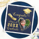 Skapa unika marinblåa och guld studenten-blöjor för 2025 års klass student med ett hjärtformat foto, Gratulerart ordspråk och gradens hylsa och diplom. Anpassa till student namn och efternamnet, ladda upp ett foto för anpassningsbarna och skriv in ett år före beställningen.