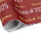 Den här studenten-inslagningen papper är djupt röd. Den pappra eleganten har texten mönster för student först och efternamn och klass från 2025. Namn (som visas: Elizabeth Andersson) visas i ett guld-skript för elegant faux (inte foil). Den andra texten är vit. All text kan redigeras.