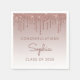 Dessa chic, studentfest av elegant, pappra blöjor har en glatt bakgrund av ro faux glitter drop gräns och bomme. Anpassa dem med hedersgästen namn i handskriftsskriptet mörk ro, med hennes klassår nedan i sans serif-teckensnitt. Perfekt för högskoleexamen eller högskoleexamen.