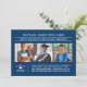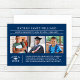 Tre inbjudningar till studentfester innehåller snyggt-typografi med 3 favoritfoton i klassen 2025 student. Anpassa den moderna vita texten till student namn, ett tillkännagivande av deras högskola studenten och en inbjudan till en grad party. Ett lock med tassel accentuerar utformningen och enkelt vitt streck klär på baksidan av kortet. Observera att marinblått färg kan ändras för att matcha fotona eller färg.