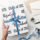 Den här studenten-inslagningen är vit. Den har texten mönster för student namn och klass 2025. Namn (Visa: Elizabeth) visas i ett svart elegant-skript. Den andra texten är också svart. All text kan redigeras.