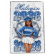 Fira din kvinnliga examen från klassen 2026 med denna djärva design med en självsäker afroamerikansk senior med snygga flätor. Hon bär en blå tröja med silverfärgade bokstäver och en chic vit veckad kjol för en polerad examenslook. En dynamisk "brister igenom" effekt med sönderriven papper, flygande pappersflygplan och djärva 2026-typografi framträder mot en vit bakgrund för en rolig, modern examensestetik.