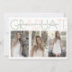 Klass 2026 examen sagegrön och persikofärgad randig modern, enkel och minimalistisk festlig fotokollage med tre bilder inbjudan. Den har texten "Examen" i sagegrön och persikofärg och tre fotografier. Baksidan har ett foto och ett diagonalt randigt mönster i samma färger.