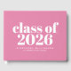 Personlig gästbok för klass 2026 med retrotypografi i rosa