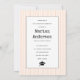 Klass 2023: Skrivarpenna Peach rand studenten fotoinbjudan. I baksidan finns persikor och vita mönster med rand.