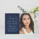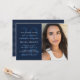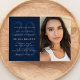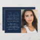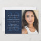 För din high school eller College student kan det här enfoto-kortet användas som antingen en partiinbjudan, ett meddelande eller båda två! Ett stort år efter detaljerna i party finns det utrymme för föräldrar att tillkännage sin grad, en fullt och alla detaljer om party. Baksidan har en vit rand mönster. Färg är marint blått som standard, men det går att redigera genom att klicka på Anpassa.