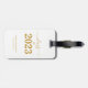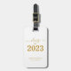 Fira student fullbordan i stil med trendigets studenten bagagemärke. Designfunktionerna "Klass 2023" i guld på en ren vit bakgrund. Anpassa den här produkten genom att lägga till namn och namn. Enkel att anpassa. Grattisar!