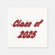 papper napkin från studenten med klass 2025 i 3D-burgundisk text. Finns i flera stilar och storlekar.