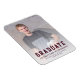 Studenten-annonsmagnet med anpassningsbarnas lodrät-foto med textövertäckning. "Student" i ord förekommer i fet burgundtypografi med ett sportsligt kollegialt utseende som passar perfekt för idrottsmannen i student, där student namn, skolan och året i studenten nedan med sans serif-typsnitt. Ett val av bra för högskoleexamen eller högskoleexamen.