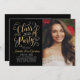 Snyggtens tvåsidiga studenten-annonskort och partiinbjudan har en porträtt i student med angränsande elegant faux guld-folie i skript med söt rulla accents. Kortets framsida innehåller även anpassningsbar guld och vit färgad som kan vara personlig för händelsen. På baksidan av kortet visas ett andra foto- och anpassningsbar för student namn, klassår och skola. Den svarta bakgrunden färg kan ändras. Fototips: skörd det andra fotot i fyrkantigt format innan det överförs till platsen.