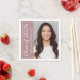 Fira högskolan student i stil med studentfest med fotoservetter. Den enkla designen har ett foto av graden porträtt med anpassningsbar i ett handskrivet stil. Ro rosans bakgrund färg kan anpassas så att den stämmer överens med skolan eller party färger.