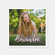 Den här studentfestens pappra napkin har ett fyrkantigt foto ram för ditt favoritfoto. Kurvtext på högerna lyder: Klass 2025. Trendiget penselns kalligrafi, täcker över fotot för en student namn.