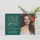 Snyggtens tvåsidiga studenten-annonskort och partiinbjudan har en porträtt i student med angränsande elegant faux guld-folie i skript med söt rulla accents. Kortets framsida innehåller även anpassningsbar guld och vit färgad som kan vara personlig för händelsen. På baksidan av kortet visas ett andra foto- och anpassningsbar för student namn, klassår och skola. Den djupa gröntens bakgrund färg kan ändras för att koordineras med fotot eller party färger. Fototips: skörd det andra fotot i fyrkantigt format innan det överförs till platsen.