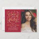 Snyggtens tvåsidiga studenten-annonskort och partiinbjudan har en porträtt i student med angränsande elegant faux guld-folie i skript med söt rulla accents. Kortets framsida innehåller även anpassningsbar guld och vit färgad som kan vara personlig för händelsen. På baksidan av kortet visas ett andra foto- och anpassningsbar för student namn, klassår och skola. Den djupa röda bakgrunden färg kan ändras för att koordineras med fotot eller party färger. Fototips: skörd det andra fotot i fyrkantigt format innan det överförs till platsen.
