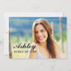 Lägg märke till högskolan eller högskolan student i samband med utlysning av studenten och inbjudan att delta i stil tillsammans. Dubbelsidigt kort har ett foto av student, accentuerat med en enkel och modern skripttext som täcker klassåret namn och klassåret. Party-informationen visas på baksidan. Färg för svartvit text och bakgrund kan ändras för att koordinera med fotot eller party färg.