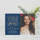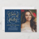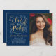 Snyggtens tvåsidiga studenten-annonskort och partiinbjudan har en porträtt i student med angränsande elegant faux guld-folie i skript med söt rulla accents. Kortets framsida innehåller även anpassningsbar guld och vit färgad som kan vara personlig för händelsen. På baksidan av kortet visas ett andra foto- och anpassningsbar för student namn, klassår och skola. Bakgrunden färg i midnattsblått/djupt marint läge kan ändras för att koordinera med fotot eller party färger. Fototips: skörd det andra fotot i fyrkantigt format innan det överförs till platsen.
