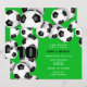 Den här söta fotbollens temainbjudan innehåller kluster av fotbollar till lämnad och överst kant på framsidan och ett enda kluster som täcker baksidan av inbjudan - anpassa informationen om party på en ljus grönt - av katz_d_zynes