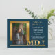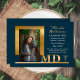 Klass och elegant en fotoguld text "MD" kaduceus läkare examensinbjudan design av Holiday Hearts Designs (upphovsrätt). Platshållarmall foto tack vare Unsplash.
