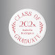 Chic röd på vit typografisk symbol lyder: KLASS OF [YEAR] STUDENT med ord som krymper runt året och din student namn eller skola i mitten med böjda botaniska löv längs varje sida av den cirkulära utformningen. Anpassa år och namn i sidlisten. Gör en roligt studenten-gåva. Om du vill visa designen för andra objekt klickar du på samlingslänken "Rocklawn Arts". Copyright ©Claire E. Skinner. Alla höger reserverade.