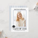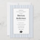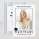 Klass 2023: Fotoinbjudan till typewriter dammiga blå rand studenten. Baksidan innehåller en dammig blå och vit mönster med rand.