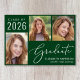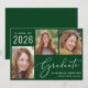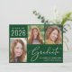 Modern Class of 2025 grönts fotomeddelande i studenten med 3 bild-kollage och "Student" i ett elegant vitt skript. Lägg till namn, klassår och skola eller universiteten i enkel vit typografi.