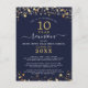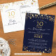 Modern och elegant återförening av vykort för alla år av återförening (visas för 10 år) med guld-stjärnor och ljus, handskriven manustypografi för elegant och en anpassningsbar färg-bakgrund (visas i marinblått) som du kan byta till färg eller party temat färg. All text kan redigeras för att du ska kunna skapa en egen text. ASSISTANS: Om du vill ha hjälp med designändring eller anpassning, ändra designen eller flytta den till en annan produkt eller om du vill samordna objekt kontaktar du designern INNAN ORDERING via Chattan Zazzle MESSAGE nedan eller e-post makeitaboutyoustore@gmail.com.