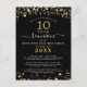 Modern och elegant återförening av vykort för alla år av återförening (visas för 10 år) med guld-stjärnor och ljus, handskriven manustypografi för elegant och en anpassningsbar färg-bakgrund (visas i svart) som du kan byta till temat färg för färg eller party. All text kan redigeras för att du ska kunna skapa en egen text. ASSISTANS: Om du vill ha hjälp med designändring eller anpassning, ändra designen eller flytta den till en annan produkt eller om du vill samordna objekt kontaktar du designern INNAN ORDERING via Chattan Zazzle MESSAGE nedan eller e-post makeitaboutyoustore@gmail.com.