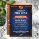 Underbara återföreningsinbjudningar i din skola färg av blått och orange, som du anpassar med all din firande-information för din stora återföreningshändelse. Den här designen har en bakgrund i riken med hörnaccenter i guld och en studentmössa och tassle i guld som gränsar till händelseinformationen. Din skola namn har en framträdande plats på en guld-banderoll höger i mitten.