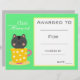 Ett modernt klasscertifikat för snyggt med söt katt i tekopp-perfekt för att uppmuntra ett ungt student. Du kan göra egna skrivor. En underbar resurs för alla typer av klasslärare.