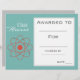 Ett utbildningsbevis för akademisk utmärkelse med atom science Tema-bild i perfekt för att uppmuntra en ung vetenskap, fysik eller kemi student. Du kan göra egna skrivor. En underbar resurs för alla typer av klasslärare.