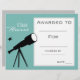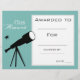En akademisk utmärkelse i skolklass med en temafältbild i teleskop i perfekt för att uppmuntra en ung vetenskap eller astronomi student. Du kan göra egna skrivor. En underbar resurs för alla typer av klasslärare.