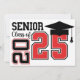 Gratulera till framgångarna för 2025 års högsta klass med denna djärva och färgstarka inbjudan till studenten. Den här inbjudan framstår som ett stolt tillkännagivande av akademisk prestation och har en slående design med "SENIOR Class of 2025" i svart och rött, kompletterad med en studentmössa grafik. Baksidan av inbjudan innehåller en annan singulär bild som visar ett upprepat mönster i "SENIOR Class of 2025" i matchande färg. Inbjudan kan anpassas så att den innehåller personuppgifter och skapar den unik för varje student firande.